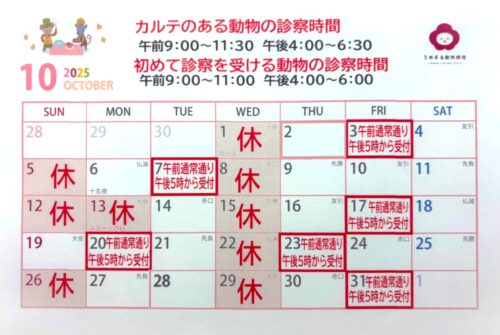 10月の休診日・診察時間変更についてのお知らせです